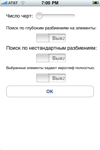 - Движок "Число черт" позволяет сузить поле поиска до иероглифов с заданным количеством черт.